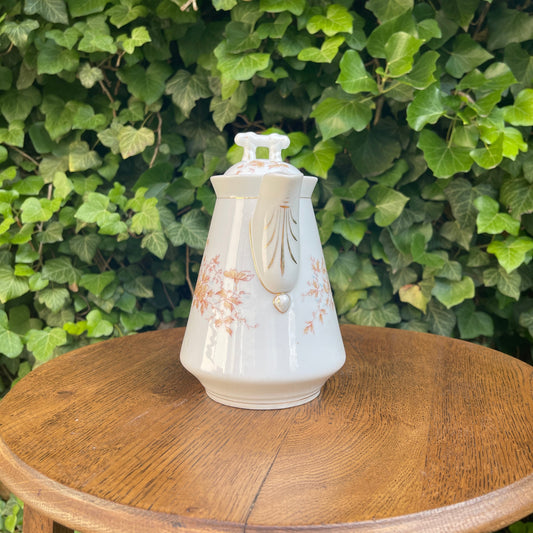 Antique Porcelain Pitcher with Lid and Gilded Botanical Decoration