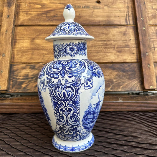 Ceramic Pottery Urn with Lid in Delft Style – T. Delfts Blauw