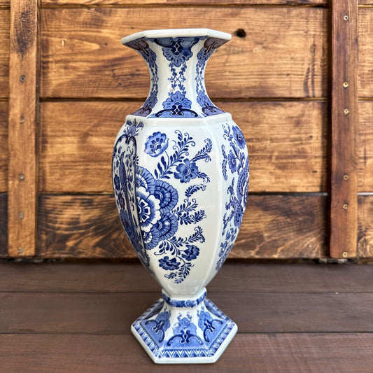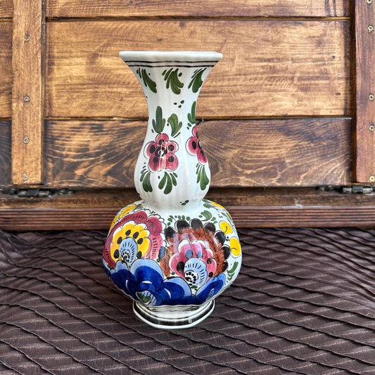 Delft Style Ceramic Vase - Colorful Floral Motif