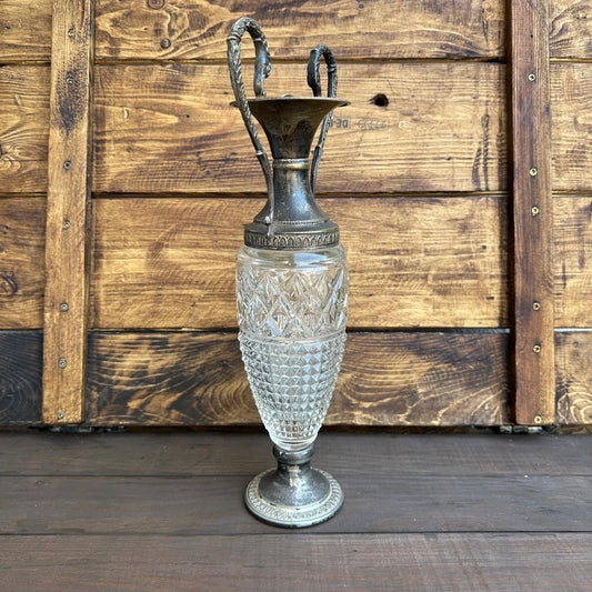 Vintage Cut Glass Carafe with Silver-Plated Handle – Italy