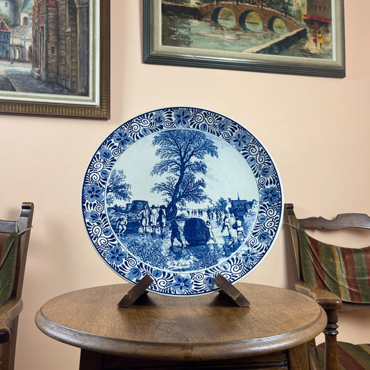 Large 13” Delft Blue Decorative Wall Plate – Hand-Decorated Dutch Charger by Chemkefa c. 1970s