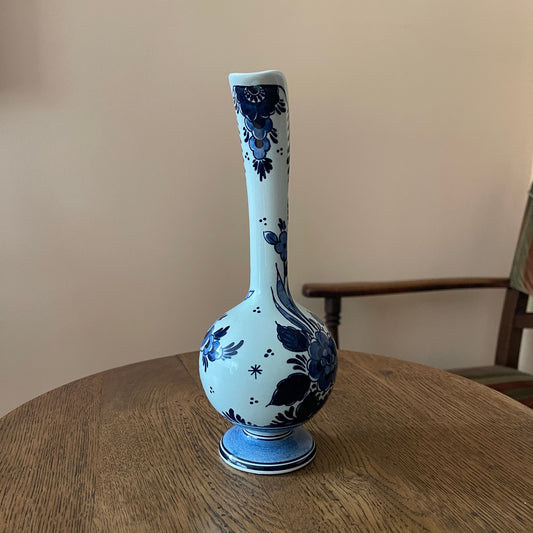 Large 12” Delft Blue Handled Vase – Vintage Floral Baluster Design