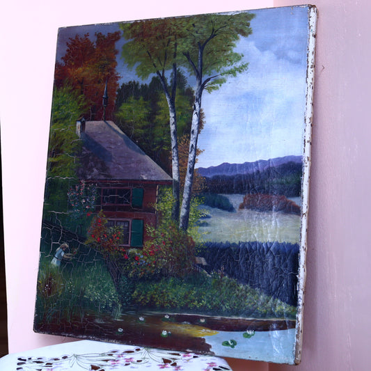 Oil Painting on Canvas – Landscape With Girl by Pond