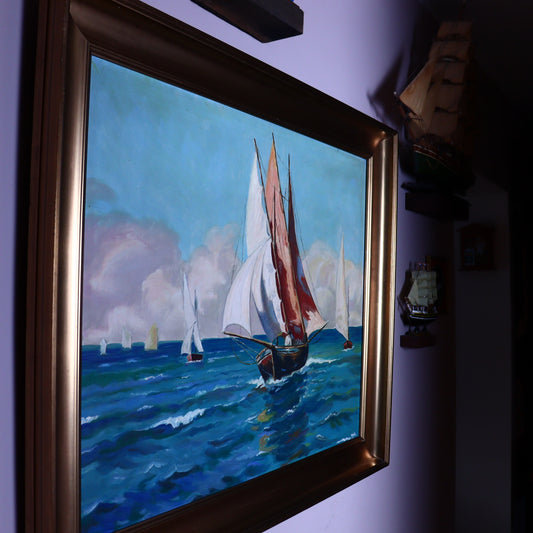 Oil Painting on Canvas – Large Seascape with Sailboats