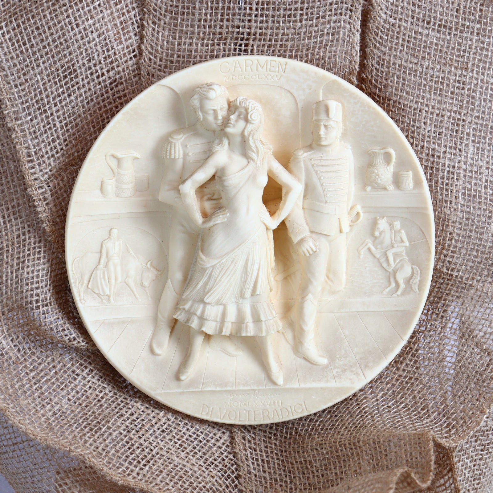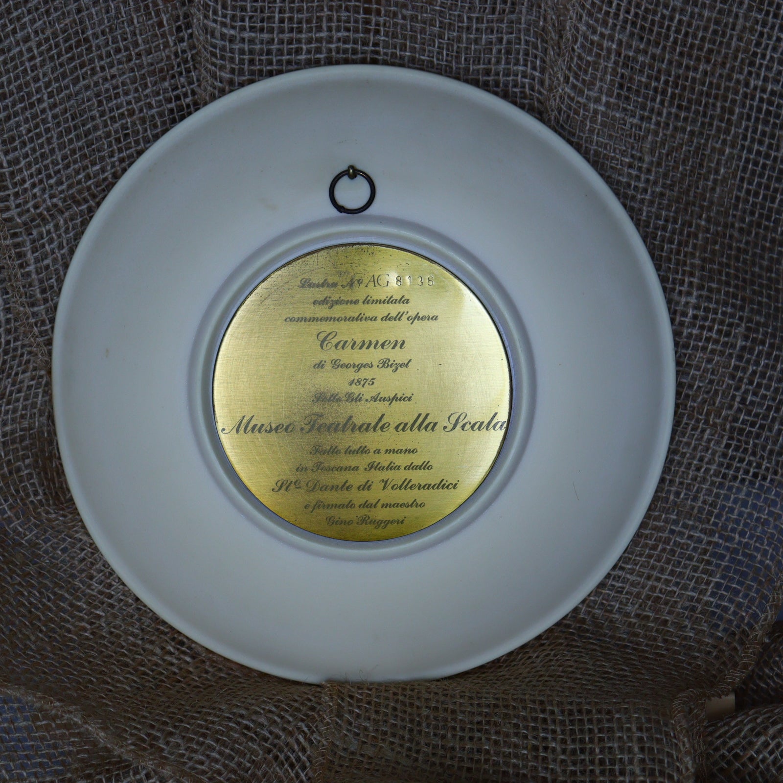Each plate showcases a high-relief 3D scene inspired by a world-famous opera such as Carmen, Madama Butterfly, Aida, or Rigoletto. Carved in elegant ivory-toned alabaster, these works of art reflect both exceptional craftsmanship and a deep appreciation for classical music. The designs were projected by Italian artists Gino Ruggieri and Franco Ingargiola and realized in the artistic heart of Tuscany exclusively for La Scala’s museum editions.
