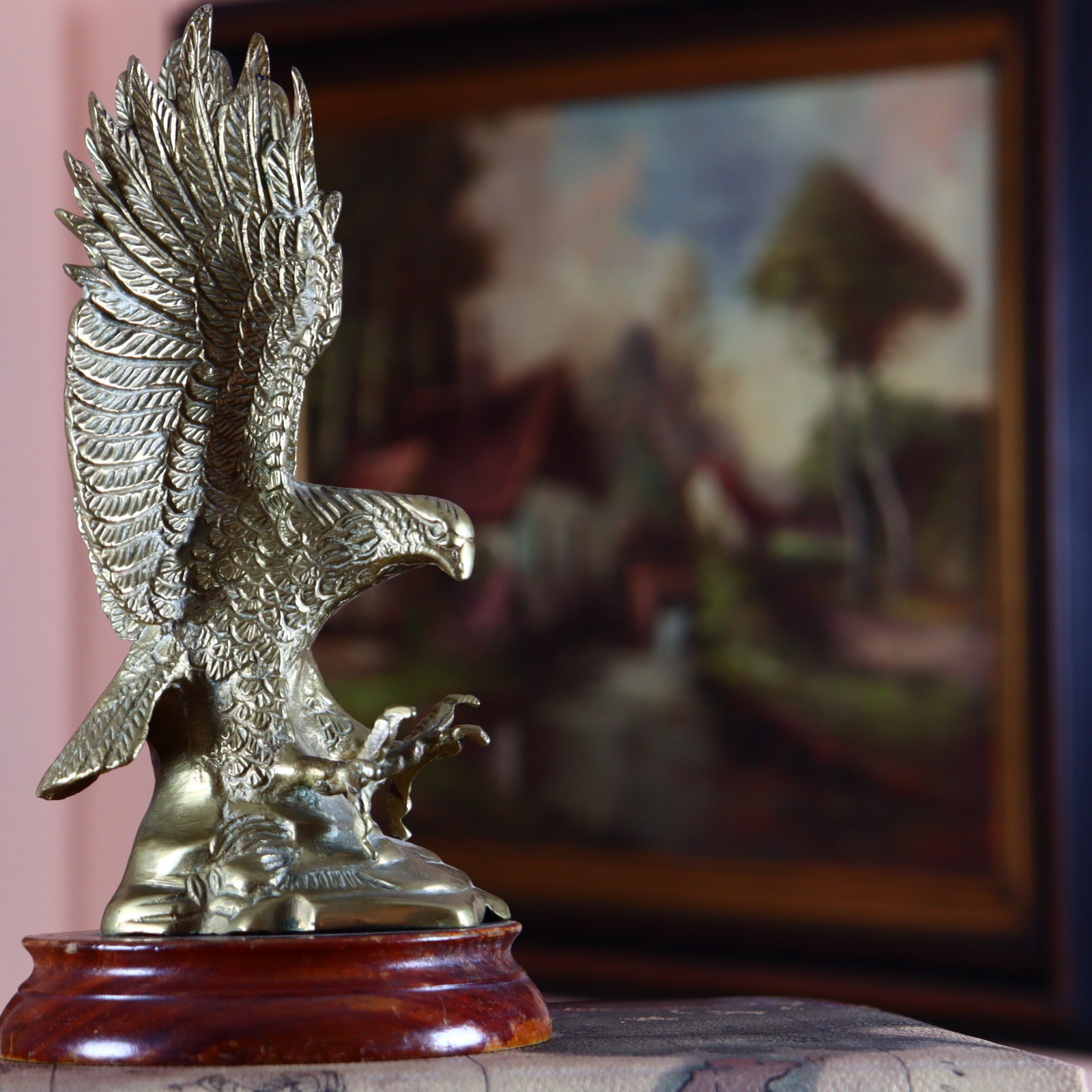 Brass Eagle Figurine on Wooden Base