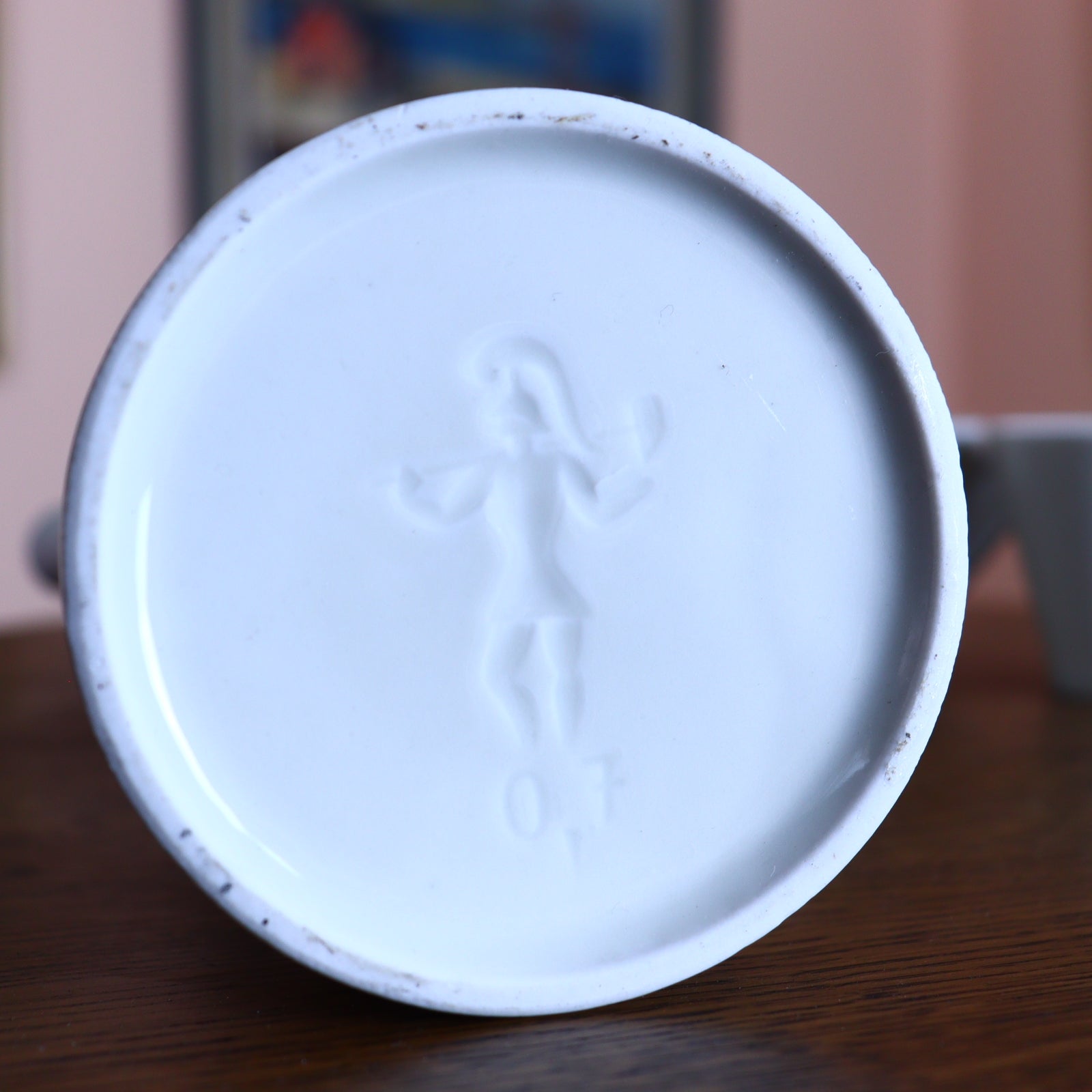 A beautifully balanced and elegant coffee service, designed in the 1960s by the celebrated German designer Richard Riemerschmid (1868–1957). This collectible set includes a tall, slender coffee pot, two matching cups, and a milk jug—each piece showcasing refined lines, harmonious proportions, and functional simplicity. Crafted in Germany and signed on the bottom, the service reflects Riemerschmid’s enduring legacy and a rare intersection of design history with postwar ceramic production. The presence of authentic “Zaren Kaffee” branding adds vintage charm and cultural context, making this an exceptional example of mid-century German decorative ceramics.