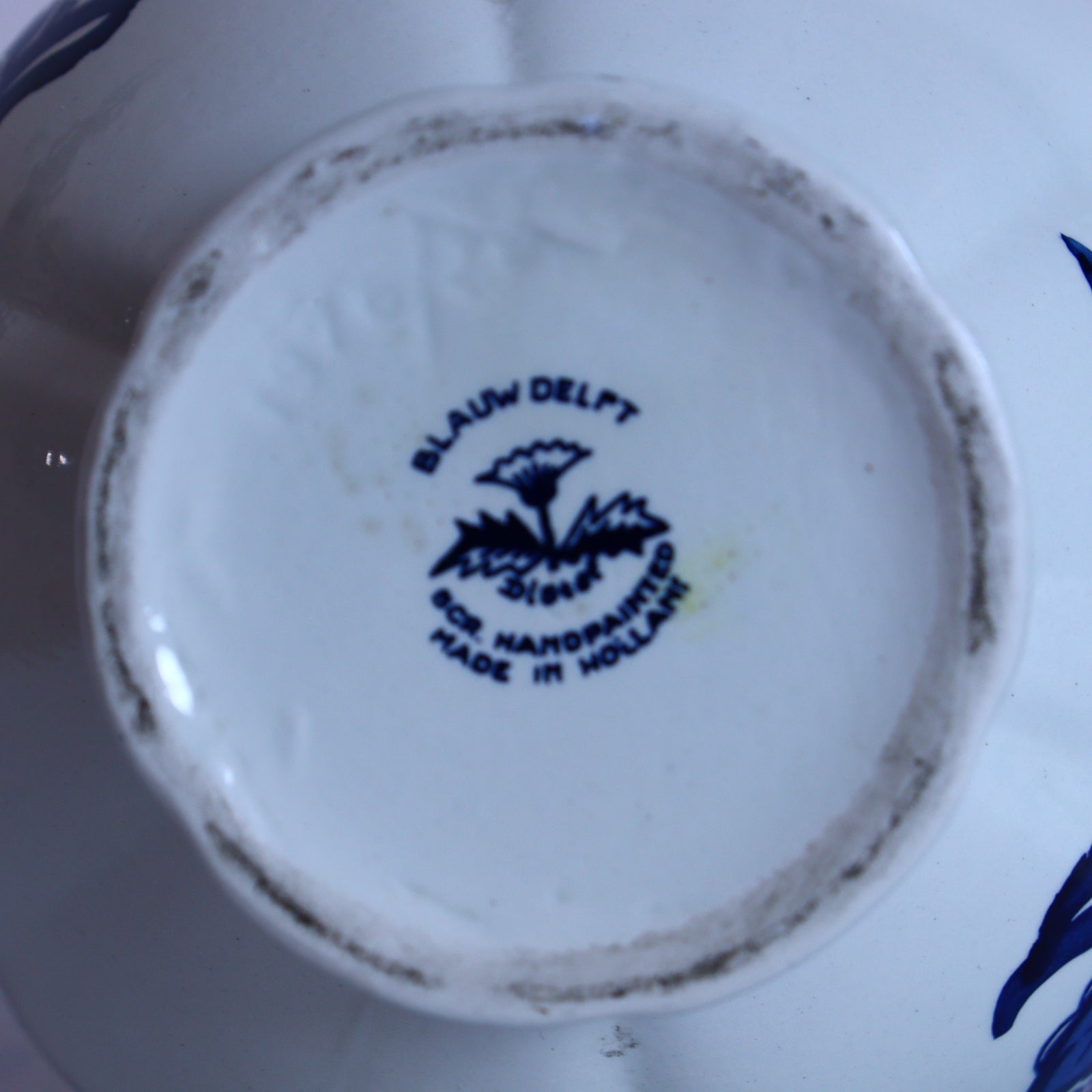 Delft ceramic, also known as Delftware or Delft porcelain, is a type of hand-painted tin-glazed earthenware that has been produced since the 17th century in the Dutch city of Delft. Inspired by Chinese porcelain, it is characterized by a white tin glaze with decorations, most often in shades of blue (known as Delft Blue), depicting Dutch scenes, floral motifs, and biblical imagery. It was made in the form of plates, vases, tiles, and jugs. The most famous still-operating manufacturer is Royal Delft (De Porceleyne Fles). Delftware differs from true porcelain in its material (earthenware), hand-painted decoration, and often the presence of factory marks or date codes on the underside.