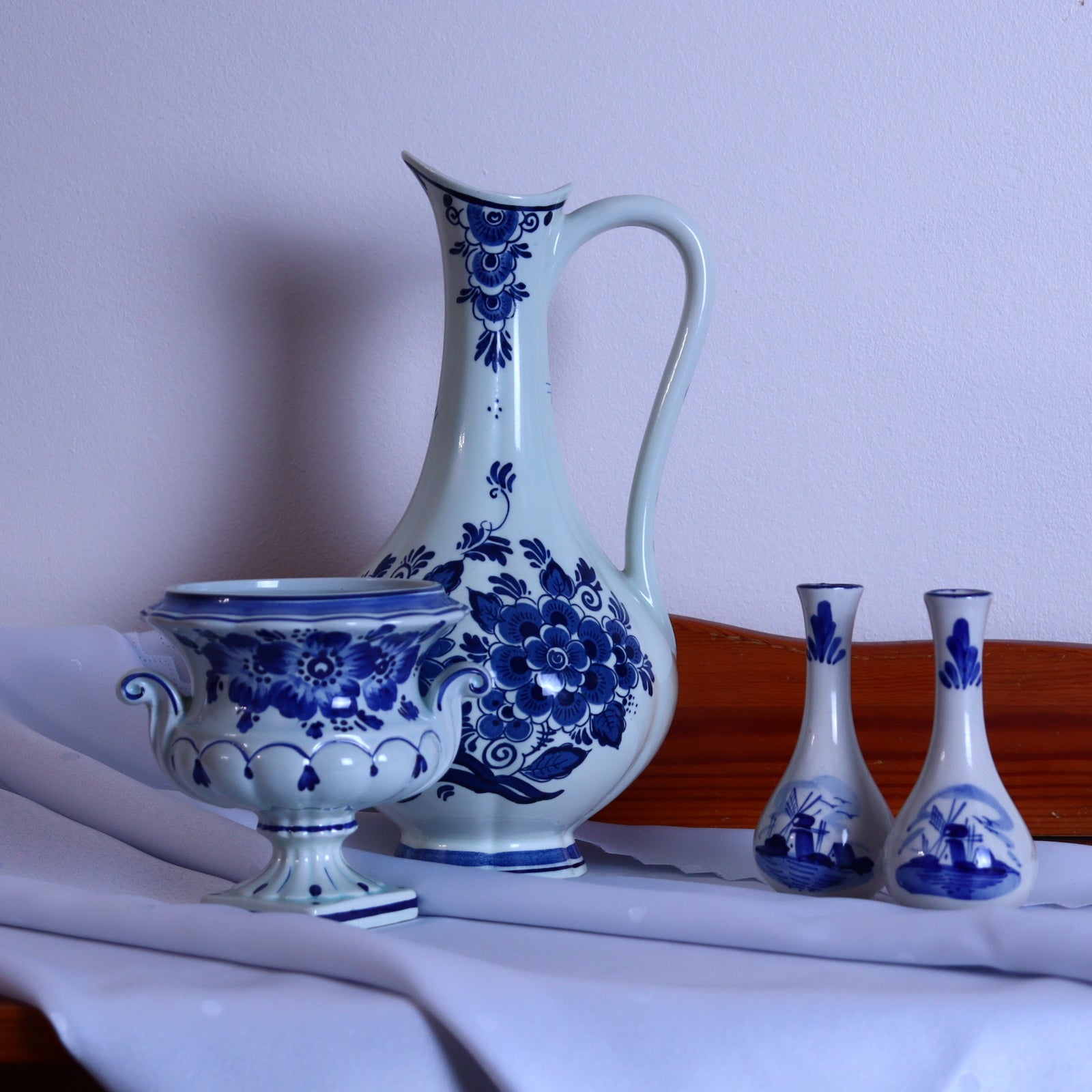 Ceramic Pitcher – Large Blue Delft Style with Floral Motif