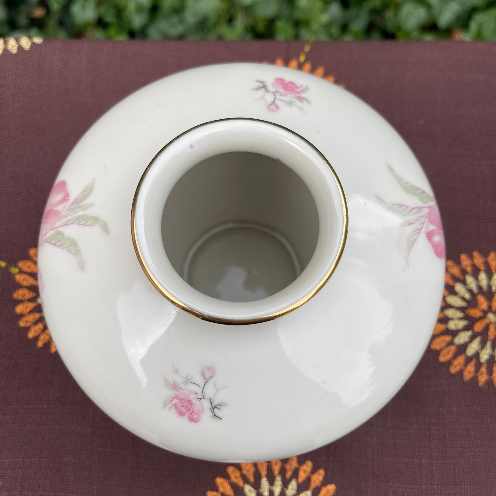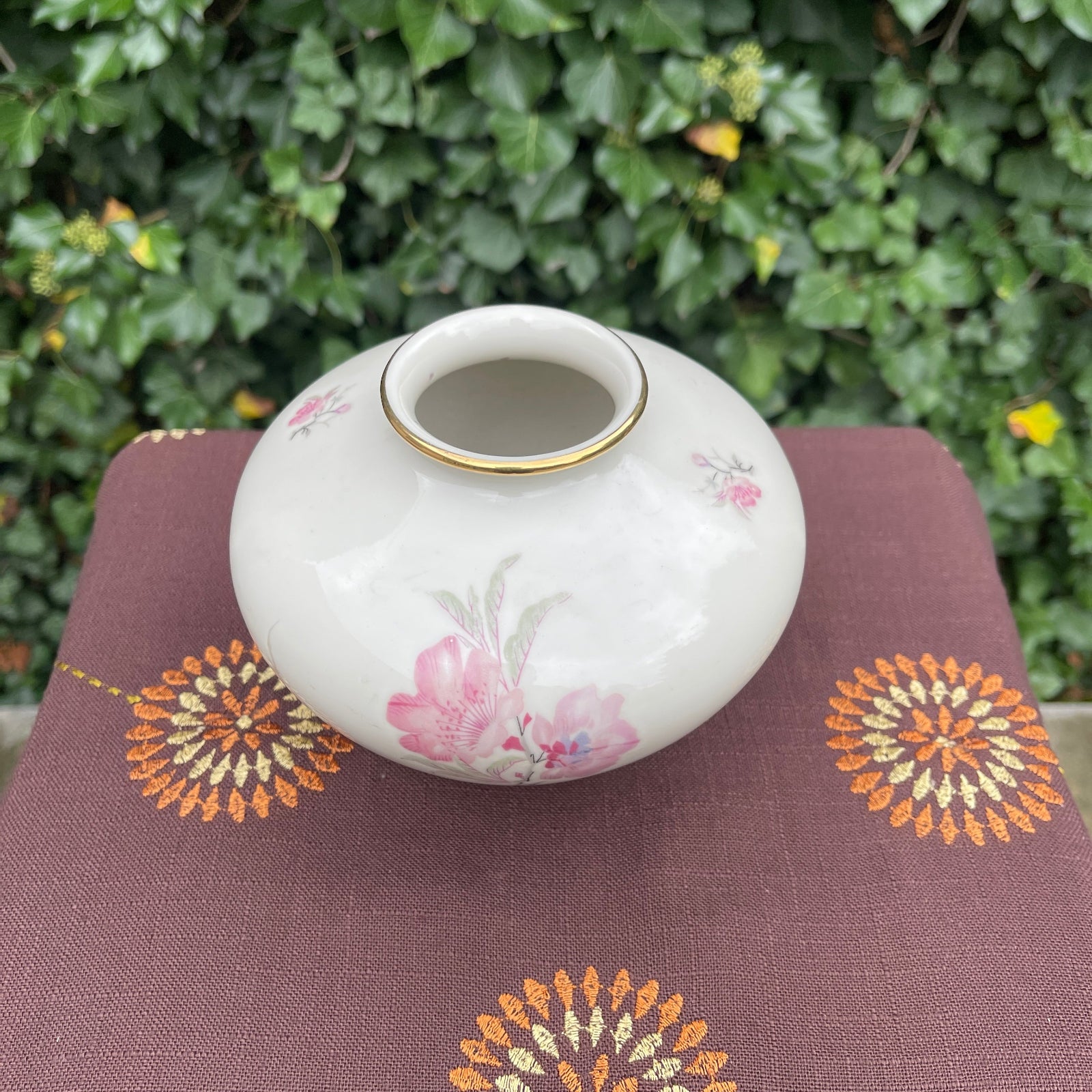 - Technique: Glazed ceramic, hand-painted floral decoration with gold accent