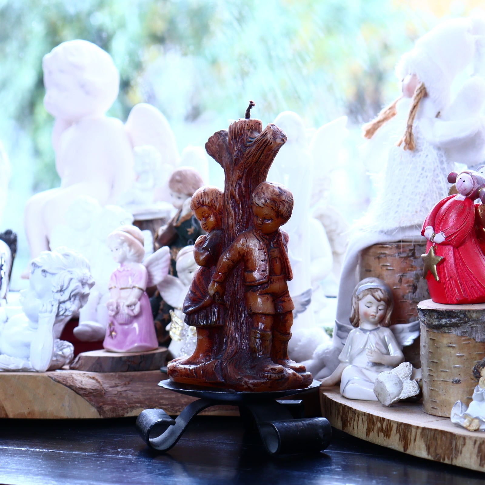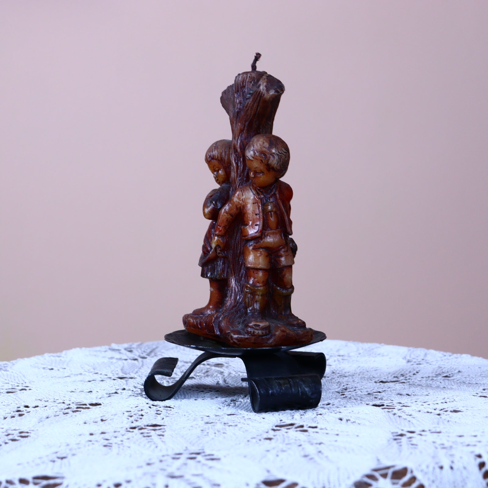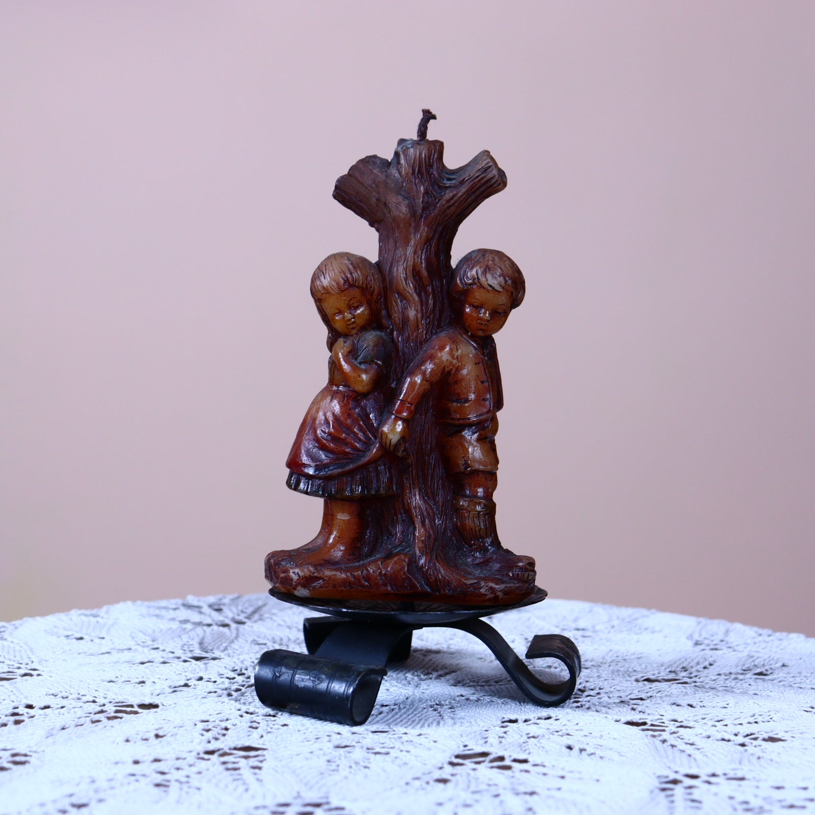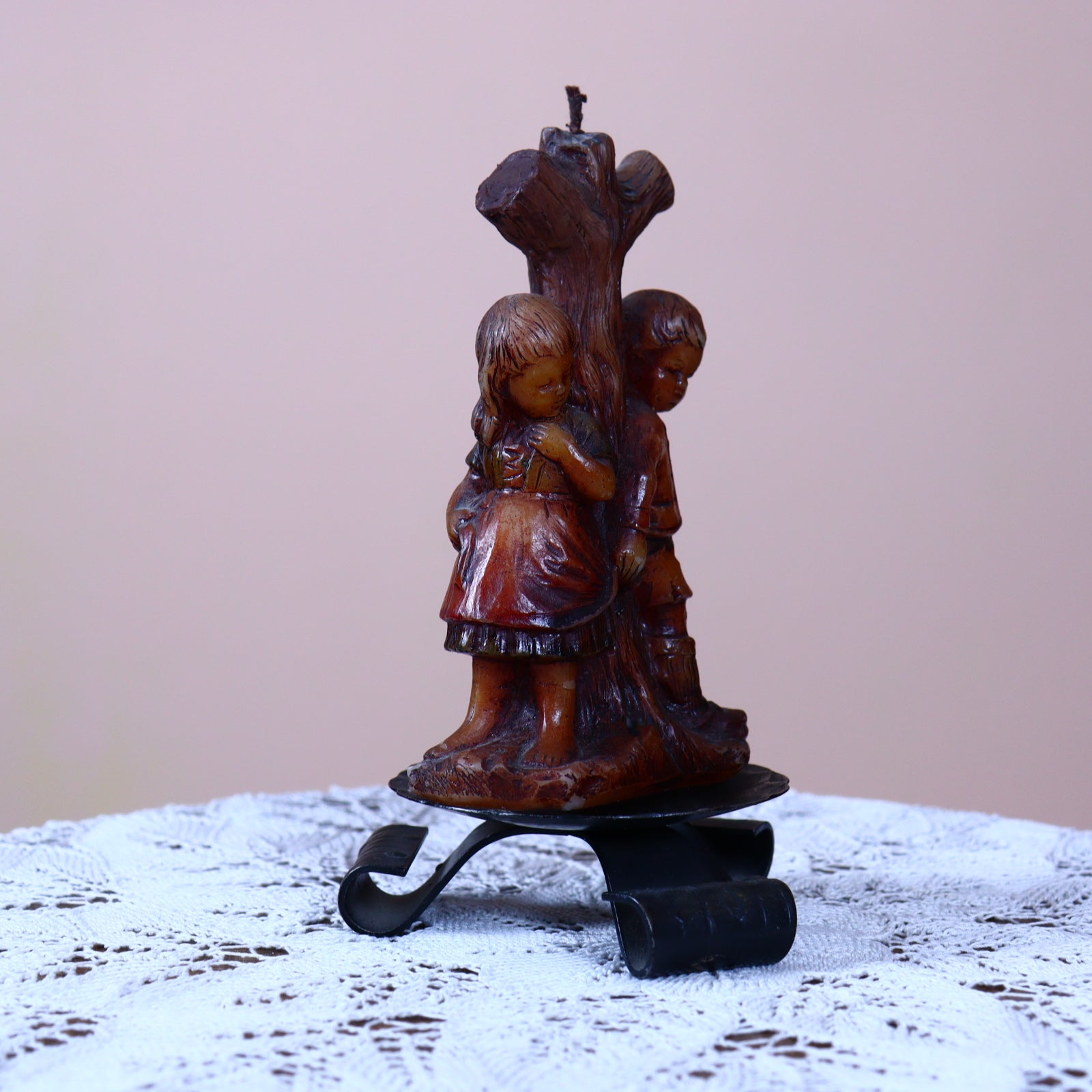 A delightful small handmade candle featuring a tender relief of children gathered beneath a spreading tree. Created in the Netherlands in the mid-20th century, this nostalgic piece captures the innocence and warmth of traditional folk motifs. Its gentle, storybook charm makes it a lovely accent for a cozy interior, vintage collection, or seasonal holiday display, adding a touch of heartfelt simplicity wherever it is placed.