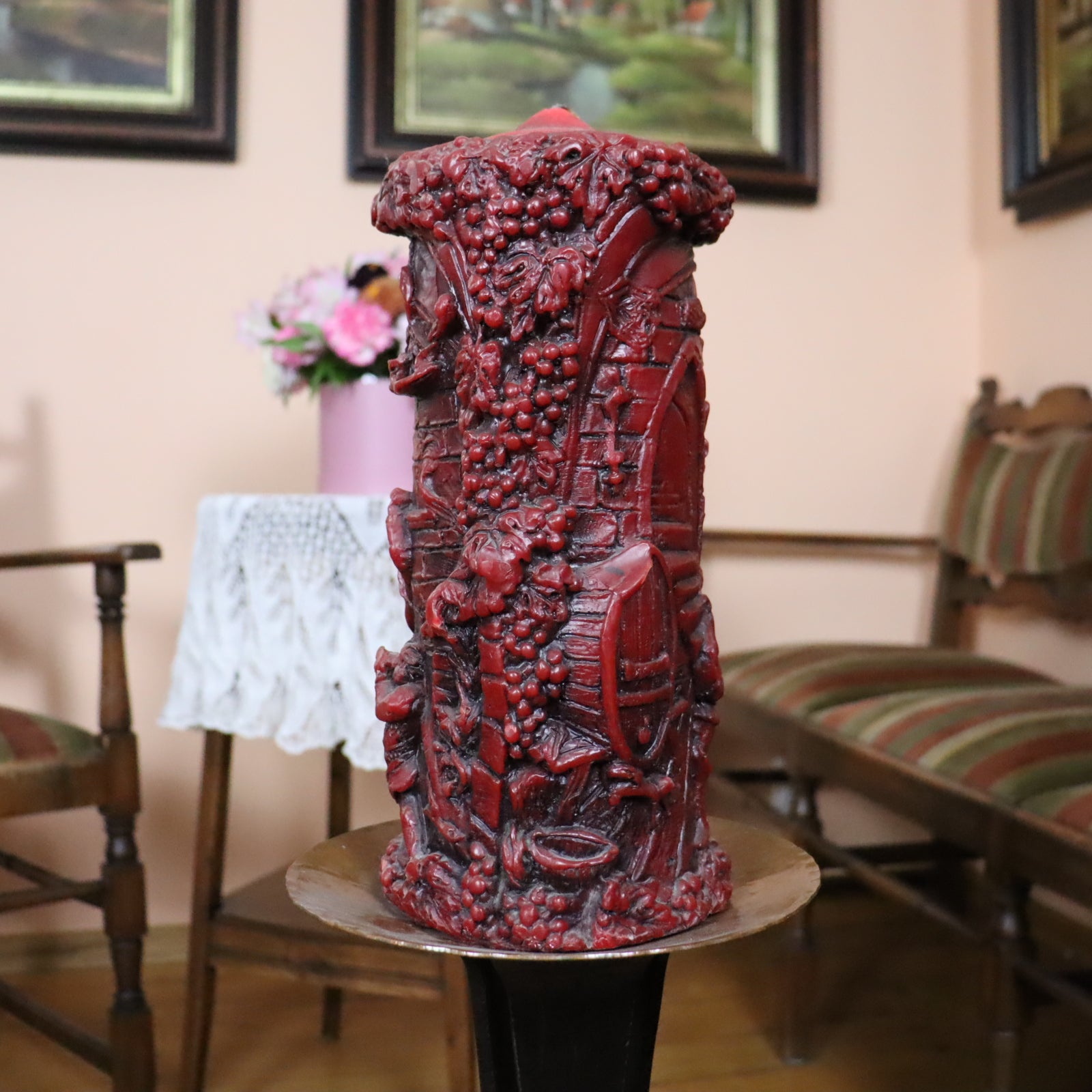 The art of crafting decorative candles has flourished in Europe for centuries, evolving from simple tallow tapers to elaborate molded designs for festive and ceremonial use. Especially popular in northern Europe, richly ornamented candles like this one were often handmade to mark special occasions, bringing both light and a sense of artistry into the home.