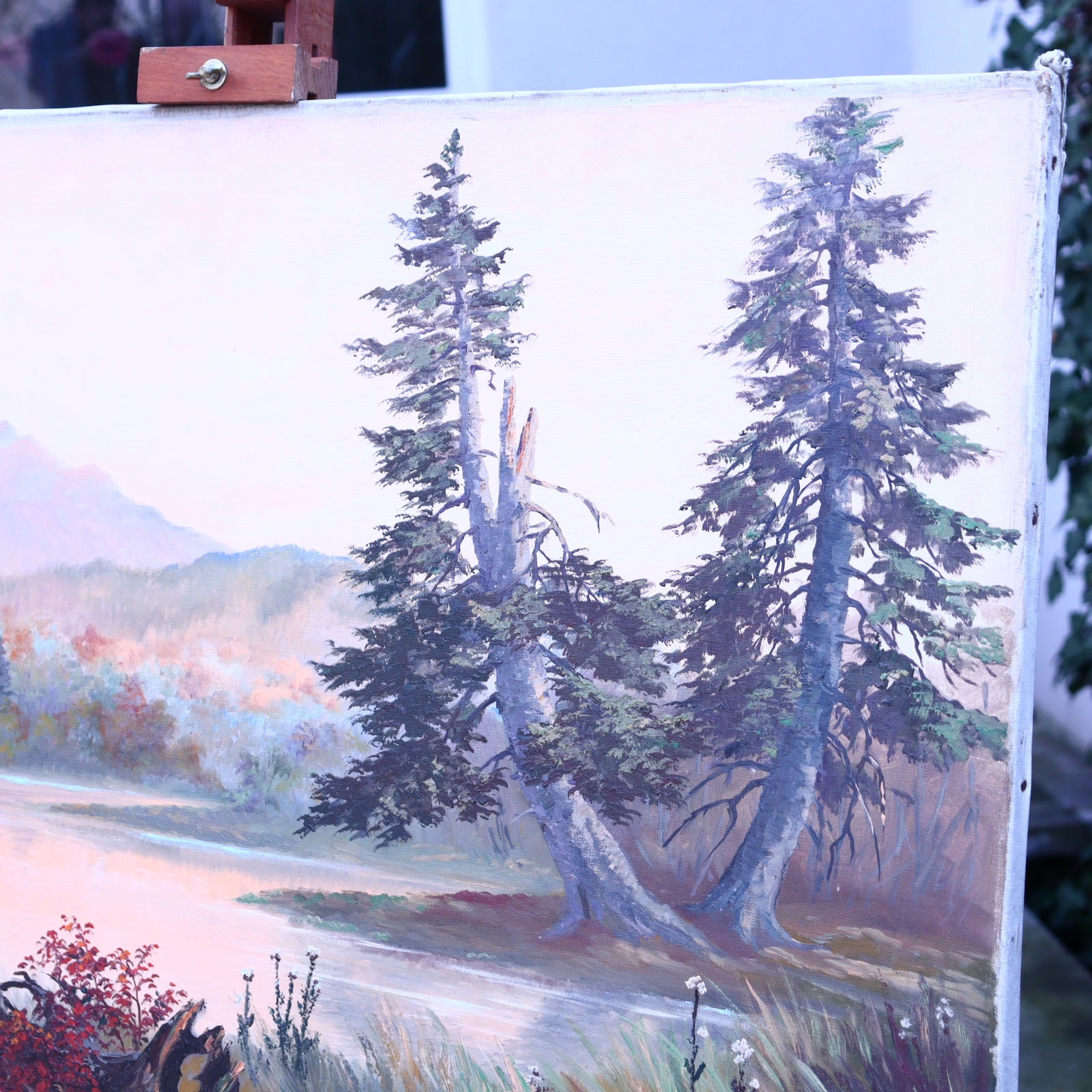 Oil Painting on Canvas – Mountain Landscape by Lake