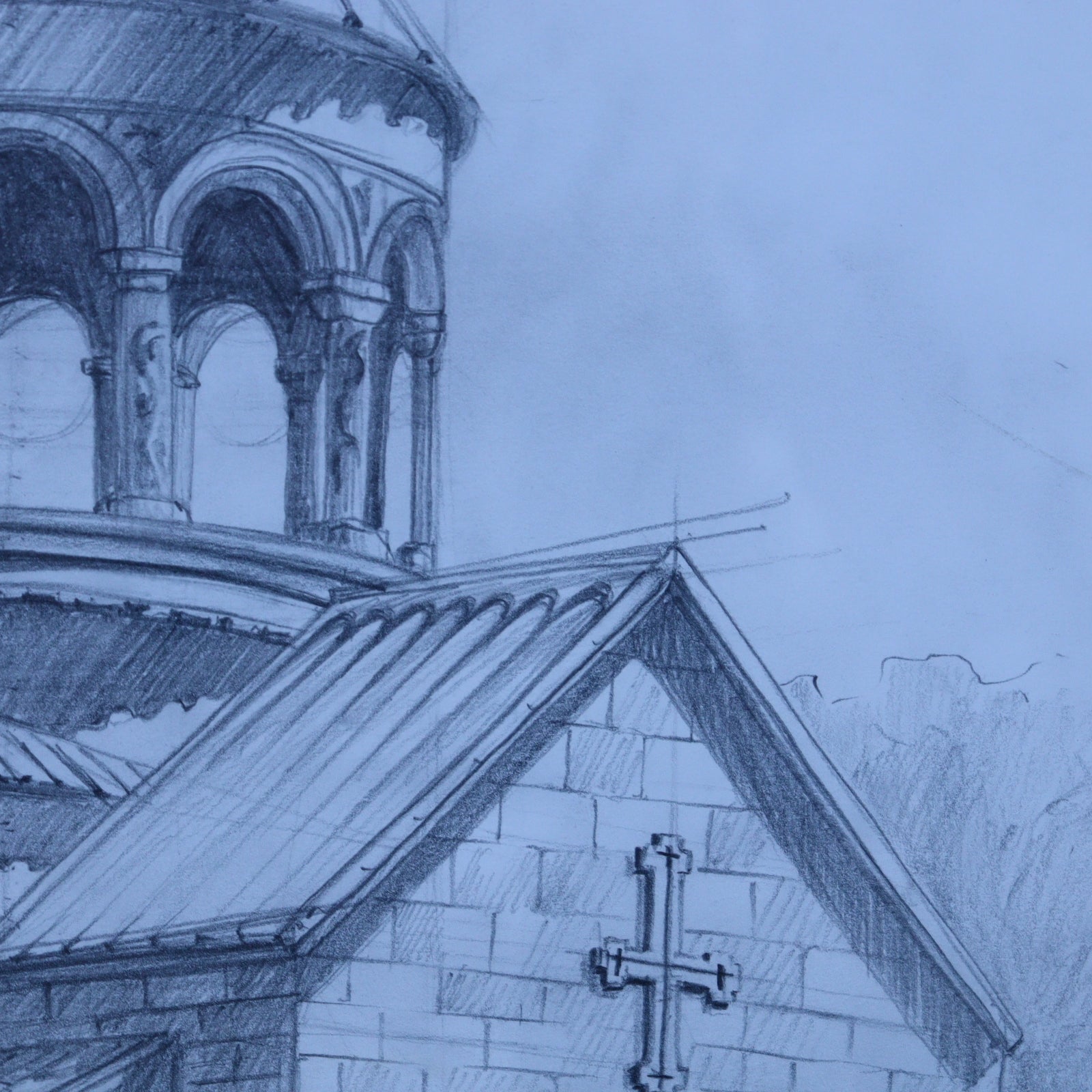 A finely executed large-format pencil drawing that highlights architectural forms with precision and character. This graphite sketch on paper combines the elegance of architectural art with the expressive quality of hand-drawn lines, creating a unique piece of framed wall art. The artist’s process remains visible in subtle auxiliary marks, adding authenticity and charm to the work. Signed in the lower corner, this framed drawing is ready to hang and makes a striking addition to a collection of architectural sketch art, graphite drawings, or vintage-inspired wall décor. Perfect for collectors and anyone seeking original, timeless artwork with architectural appeal.