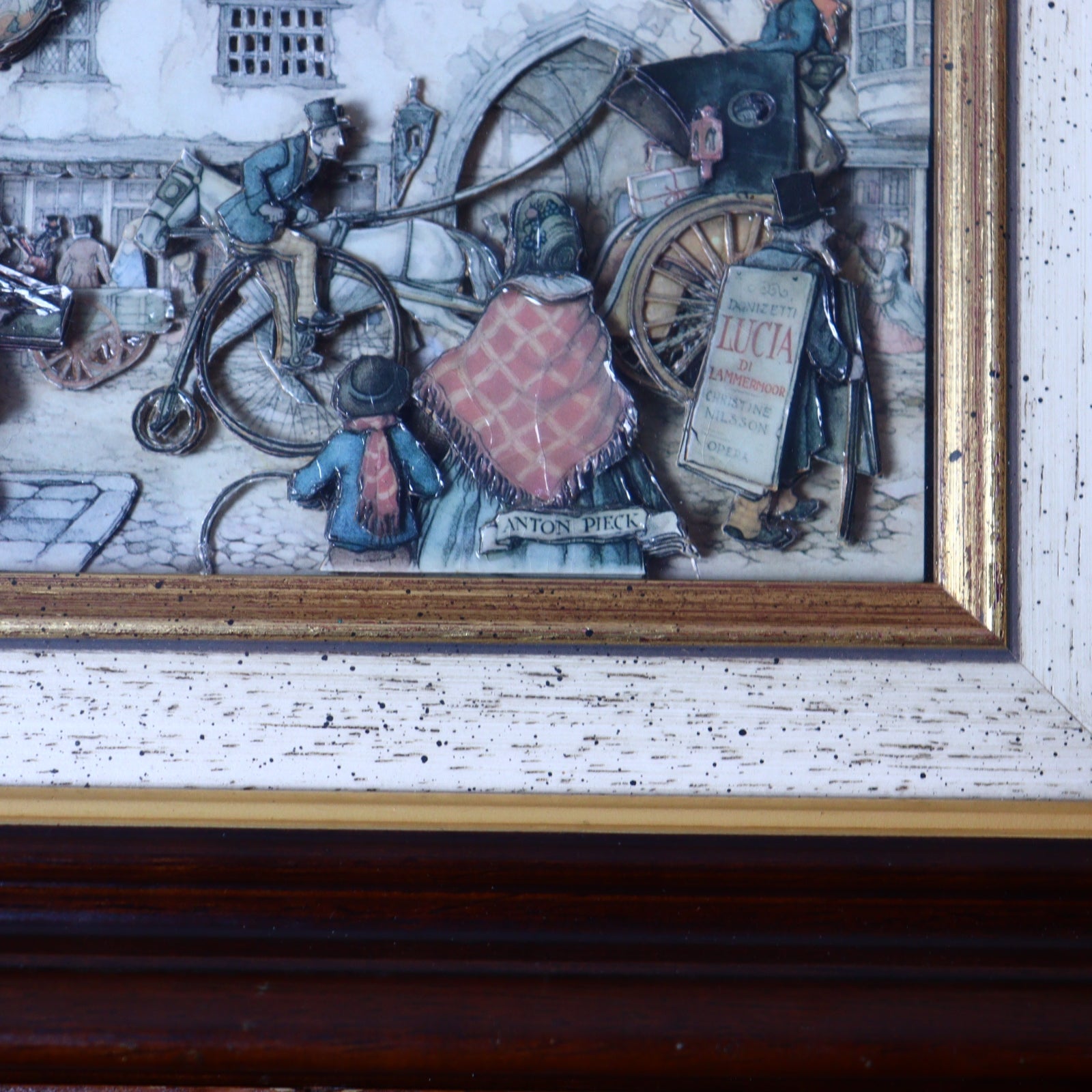 Vintage 3D Paper Art by Anton Pieck - Street Scene With a Cyclist