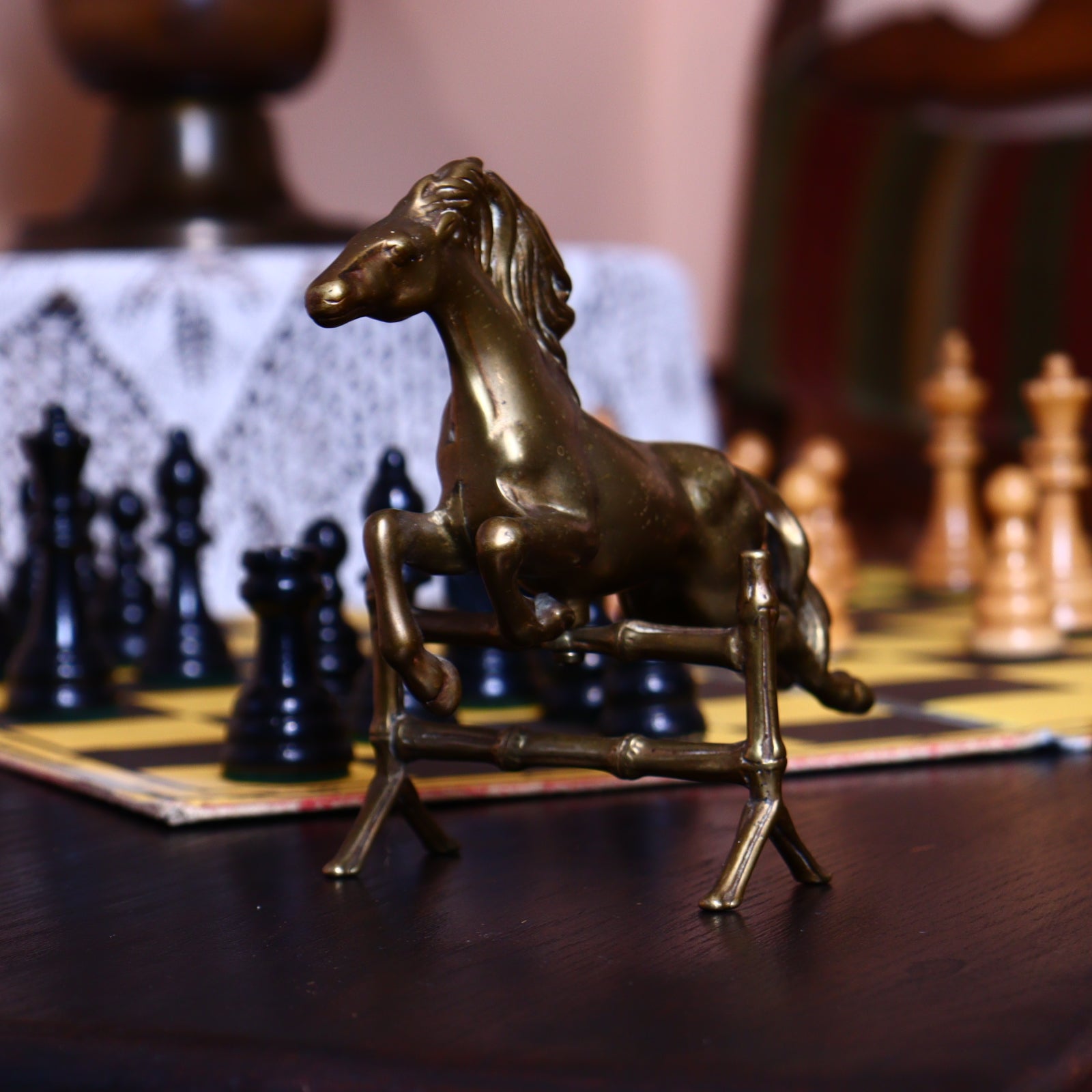 Vintage Brass Figurine – Horse Jumping Fence