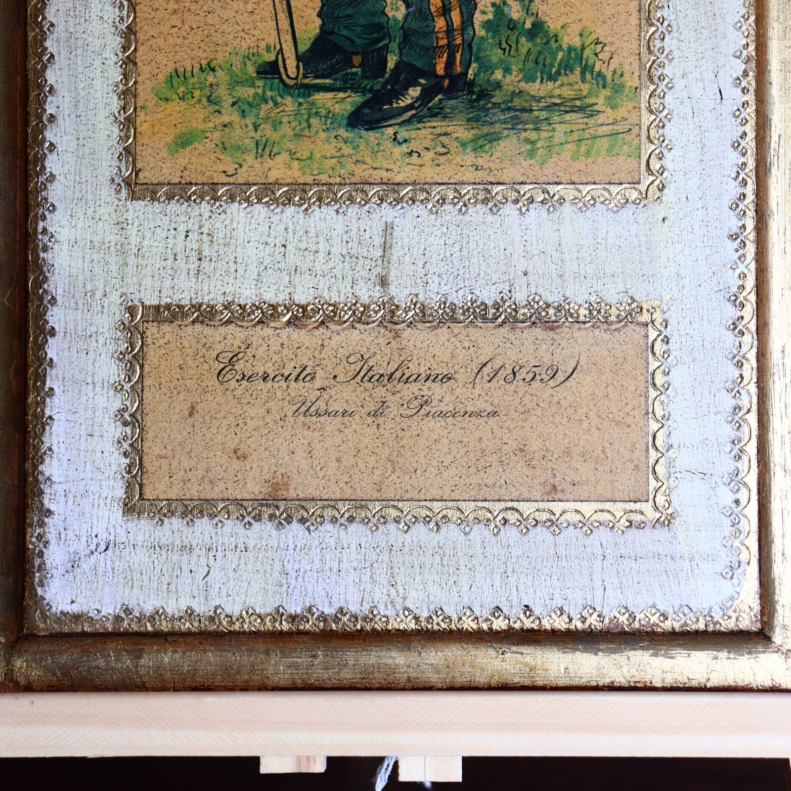 A vintage wooden panel showcasing a printed image of a proud 19th-century Italian soldier in full regalia. Crafted in Italy in the second half of the 20th century, this stylized piece exudes timeless historical charm and pays tribute to classic military tradition. With its refined vintage character, it makes a unique decorative accent for interiors inspired by classical elegance, military heritage, or European history.
